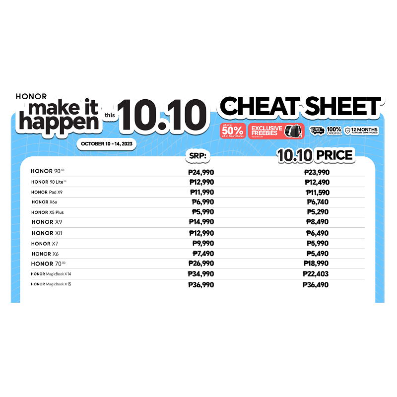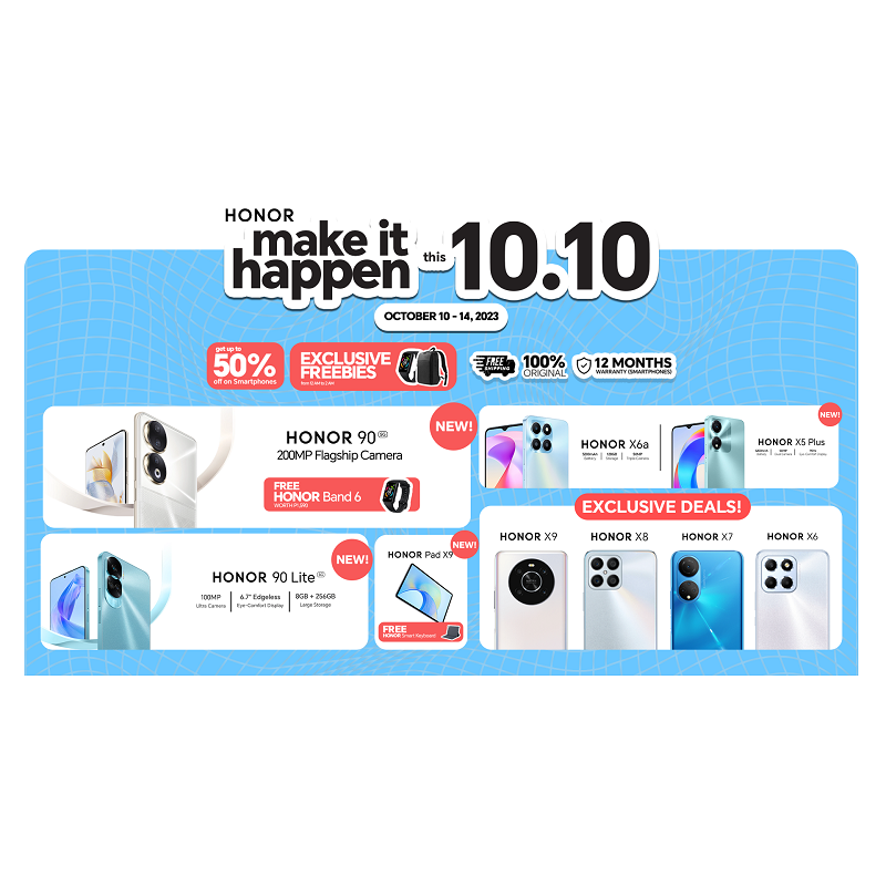 HONOR’s most powerful hero smartphone HONOR 90 5G is also getting a price drop, now only at ₱23,990. And the recently launched HONOR 90 Lite 5G, HONOR X6a, HONOR X5 Plus, and HONOR Pad X6 will also come at a discounted price during the HONOR 10.10 Sale from October 10 to 14, 2023.
