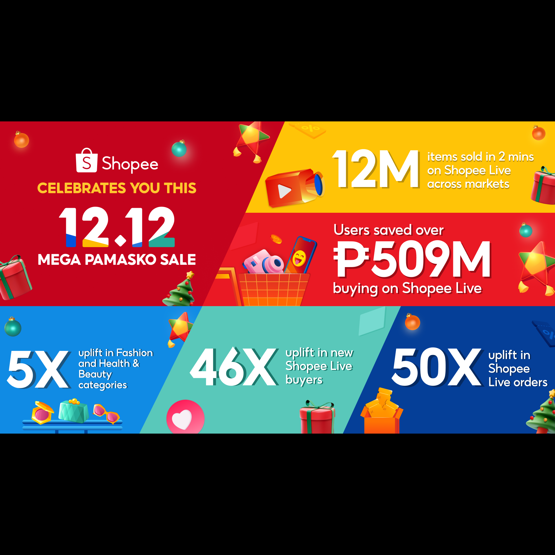 Shopee, the leading e-commerce platform in the country, joined the country’s holiday shopping season with an outstanding 50x uplift in orders on Shopee Live, an interactive live-streaming feature in Shopee during its 12.12 Mega Pamasko Sale. With the gifting season in full swing, the first two minutes of the highly anticipated sale resulted in a whopping 12 million items sold on Shopee Live across markets.
