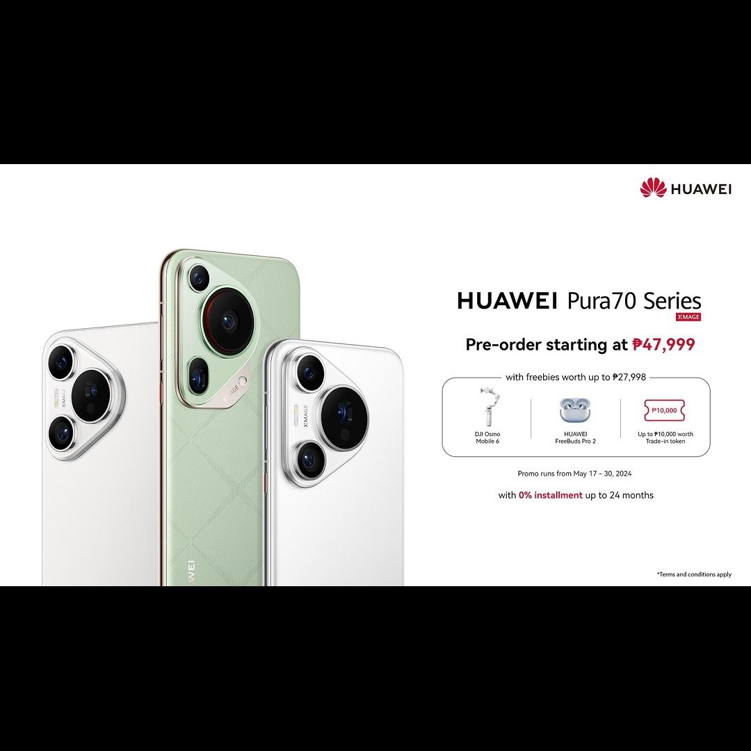 Get ready for the arrival of the new HUAWEI Pura 70 Series starting May 17 until May 30, 2024. If you're eager to get your hands on one, you can secure yours in advance by pre-ordering. This way, you'll be one of the first to try out the latest flagship smartphone camera king. And as a bonus for pre-ordering, you will snag some cool freebies like the DJI OSMO Mobile 6 worth ₱7999 and HUAWEI Freebuds Pro 2 worth ₱9999.