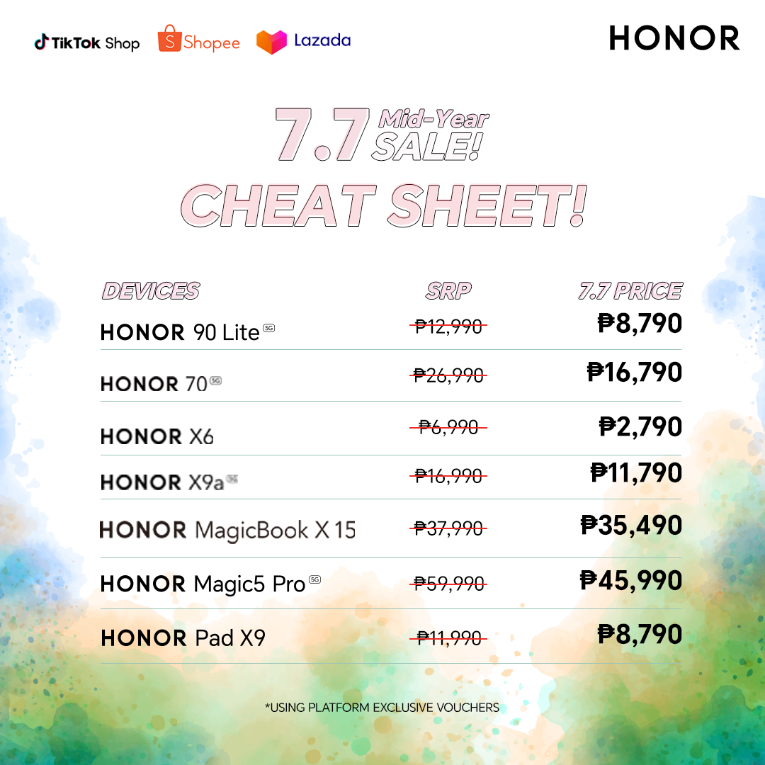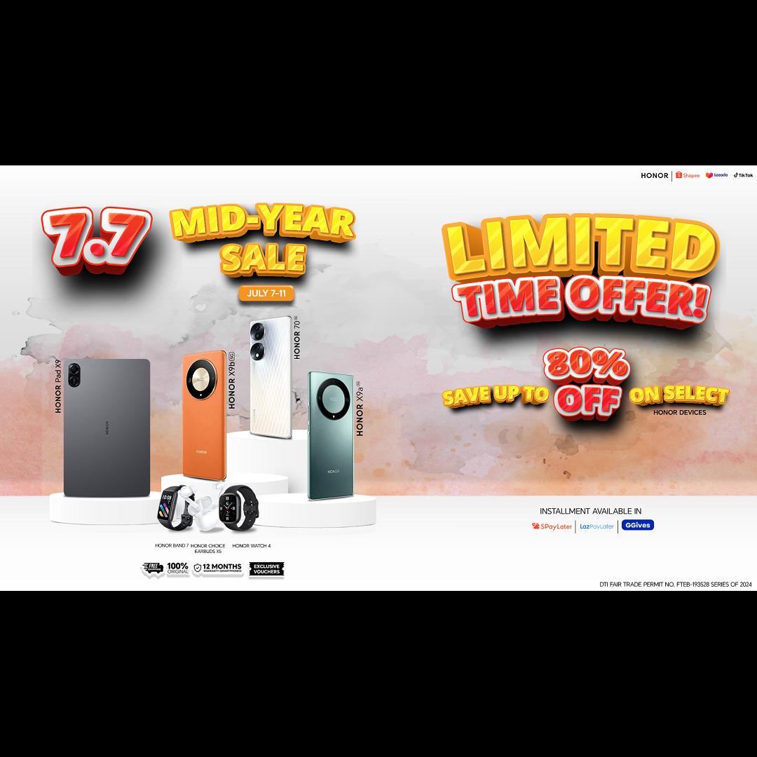Leading smart devices provider, HONOR, welcomes the middle of the year with a double-digit treat sale from July 7 to July 11 across Lazada, Shopee, Tiktok Shop. HONOR fans can enjoy up to ₱14,000 discount using the platform vouchers.