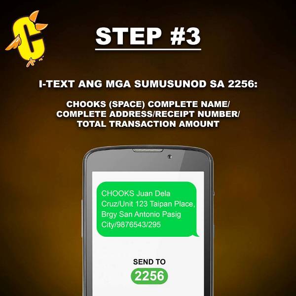 To earn entries, customers need to send their complete name, address, official receipt (OR) number, and total transaction amount via text message to 2256. Chooks-to-Go will be raffling off three (3) winners per weekly draw, until August 13, 2018.