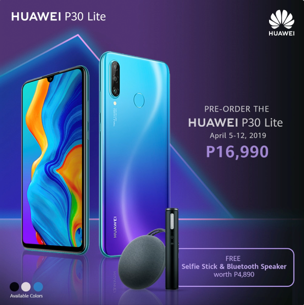 3. Huawei P30 Lite is available for preorder at PhP 16,990, coming with a free selfie stick and a Bluetooth speaker worth PhP 4,890.