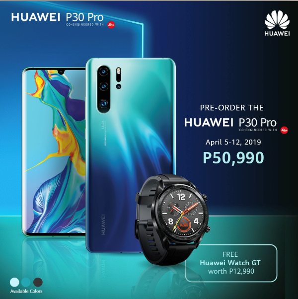 1. Huawei P30 Pro is available for preorder at PhP 50,990, shipping with a free Huawei Watch GT worth PhP 12,990.