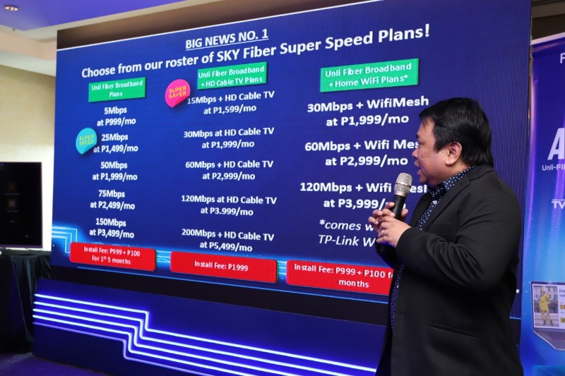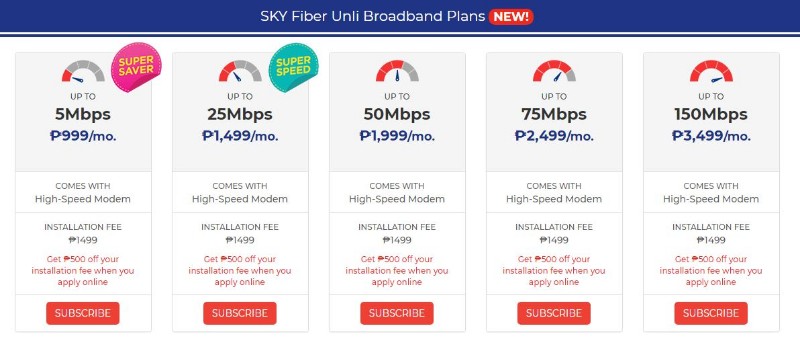 SKY Fiber’s Super Speed Plans start with its most affordable unlimited fiber Internet offer, the Plan 5Mbps that is available at only PhP 999/month. Its new Plan 25Mbps is its best value plan priced at only PhP 1,499/month, while its Plans 50Mbps is priced at PhP 1,999/month. Other plans include 75Mbps at PhP 2499/month and 150Mbps at PhP 3,499 have been made more competitive and now cost up to PhP 900/mo less than its rivals.