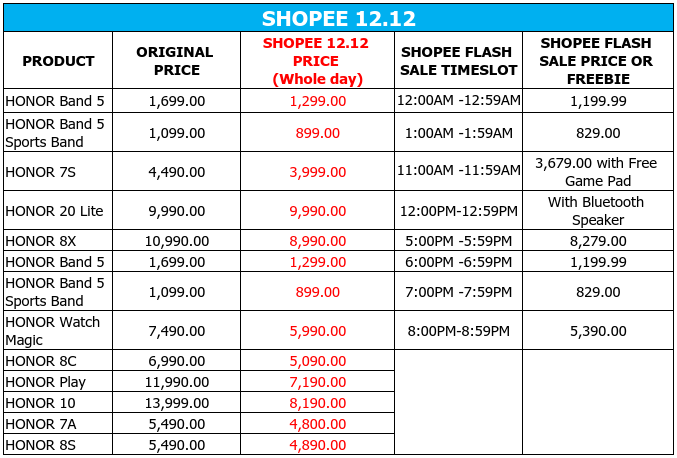 On the day of the 12.12, flash sale timeslots on Shopee will have you adding to cart everything from phones to accessories. The table below shows when to log in and proceed with your cart and the sale windows for that free gamepad and Bluetooth speaker from HONOR.