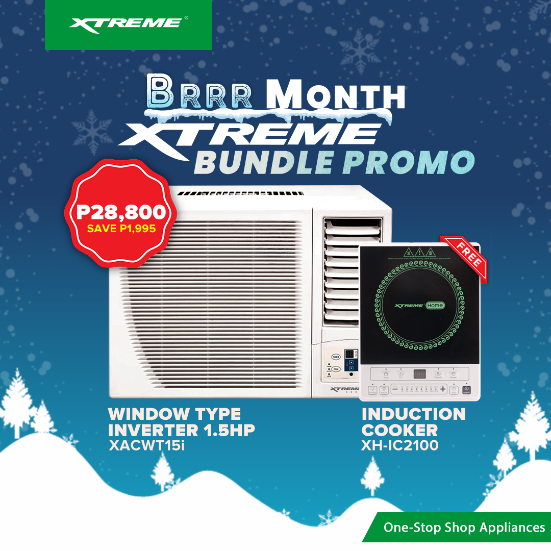Because we want you to #StayAtHomeWithXTREME, chill and relax with our Window Type Inverter Aircon and Split Type Inverter Aircon. Inverter type of aircon allows the consumer to save more energy and consume less power. Listed below are the bundles with XTREME Basic LED TV and XTREME Home Induction Cooker.