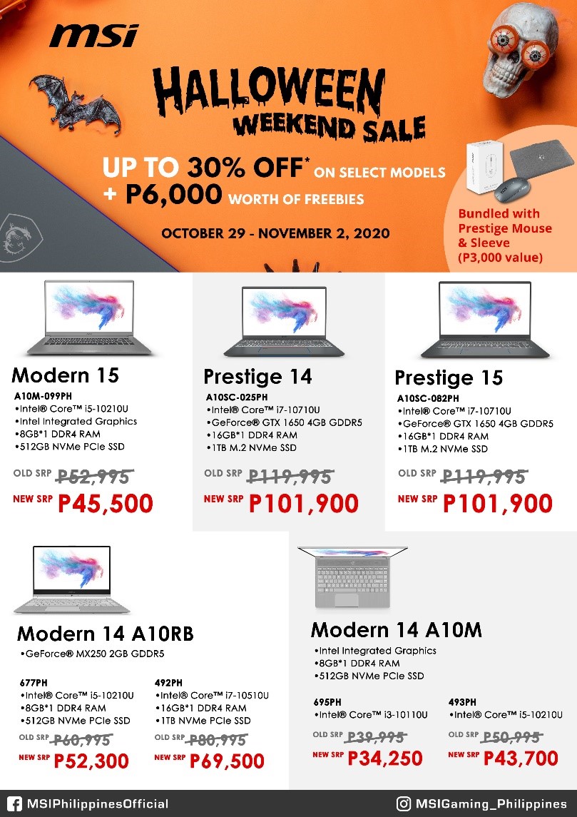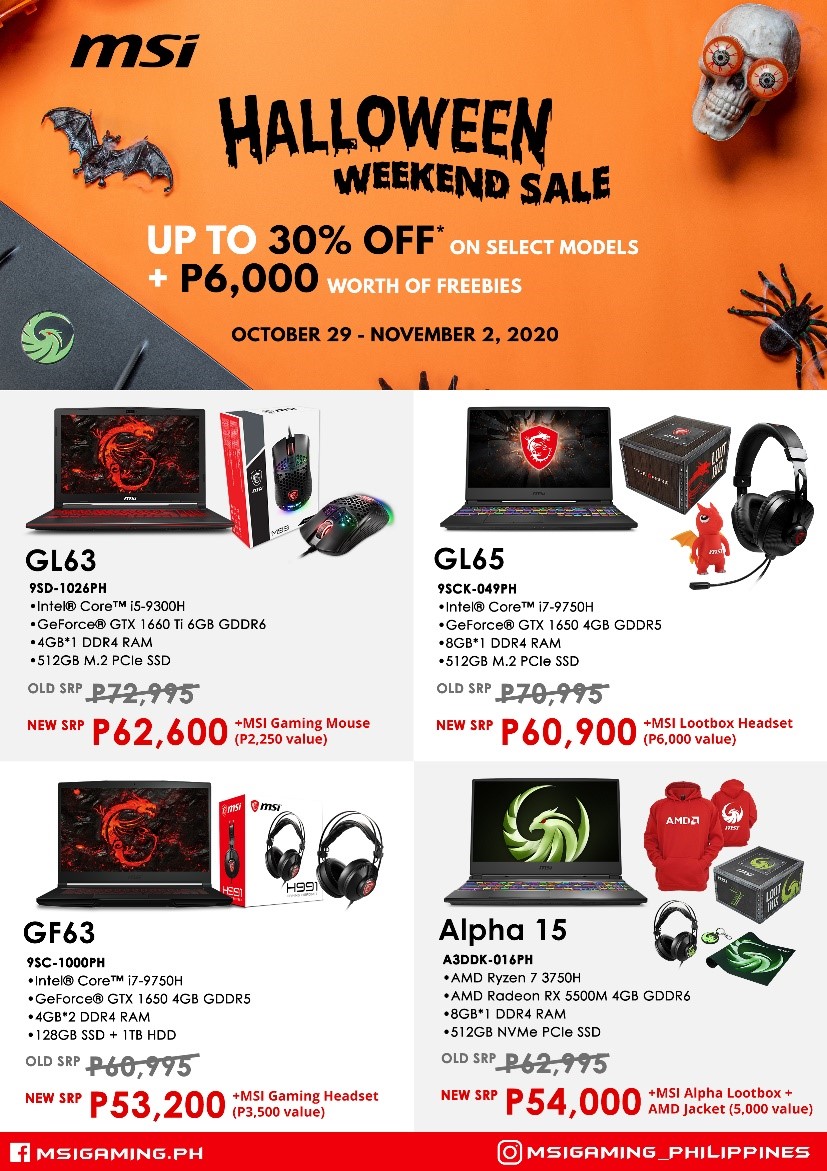 Watch out this coming October 29 to November 2 for MSI’s Halloween Weekend Flash Sale! Get up to 30% discount on select business, productivity, and gaming laptops plus special freebies like gaming headsets, mouse, loot boxes, and more!