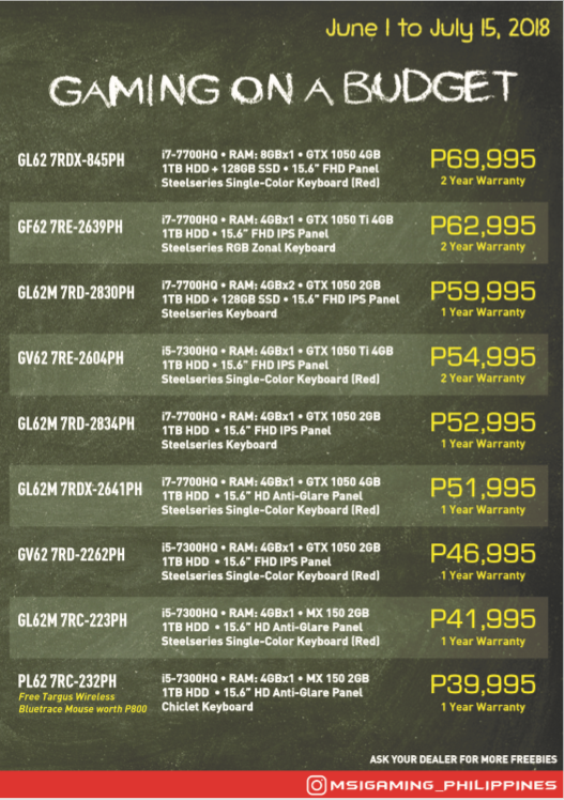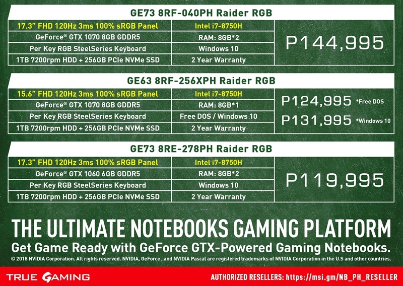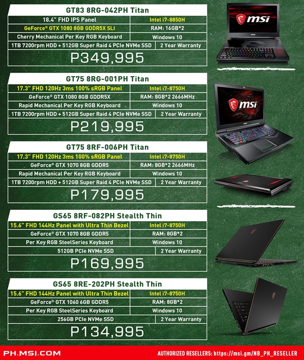 From this month until July, MSI is giving you no reason not to game in spite of schoolwork and monsoon rains. MSI is bringing to you its full roster of gaming laptops powered by Intel's latest 8th Generation Core processors. Let's take a quick look at the models.