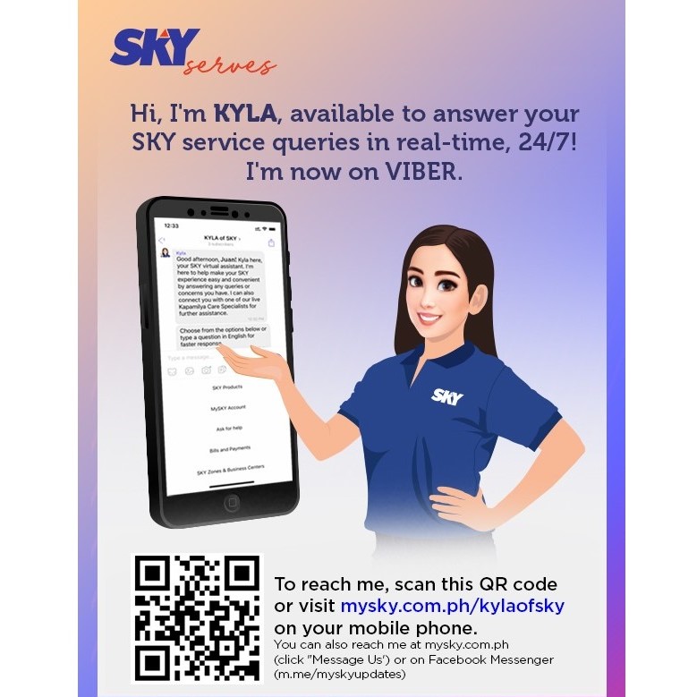 SKY brings its round-the-clock messaging platform, KYLA, to Viber to reach and serve more of its valued subscribers and address their concerns more easily and quickly.