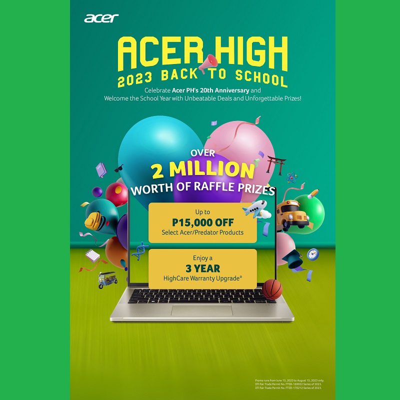 The Acer High 2023 Back-to-School promo is bigger than ever with over Php 2M worth of prizes at stake. This coincides with Acer’s 20th anniversary this year! 40 Acer customers will get a chance to win amazing overseas and domestic trips, Acer and Acerpure products.
