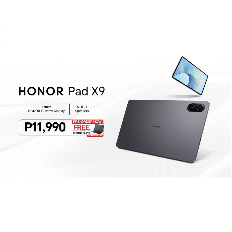 The HONOR Pad X9, priced at ₱11,990, comes in a stunning Space Gray color and is now available for preorder from September 27 to 30 where you can get a FREE Premium HONOR Keyboard worth ₱2,499 at HONOR Experience and Partner Stores or online via Lazada, Shopee, and TikTok Shop. HONOR fans can also avail HONOR Pad X9 via Home Credit for as low as ₱481 per month.