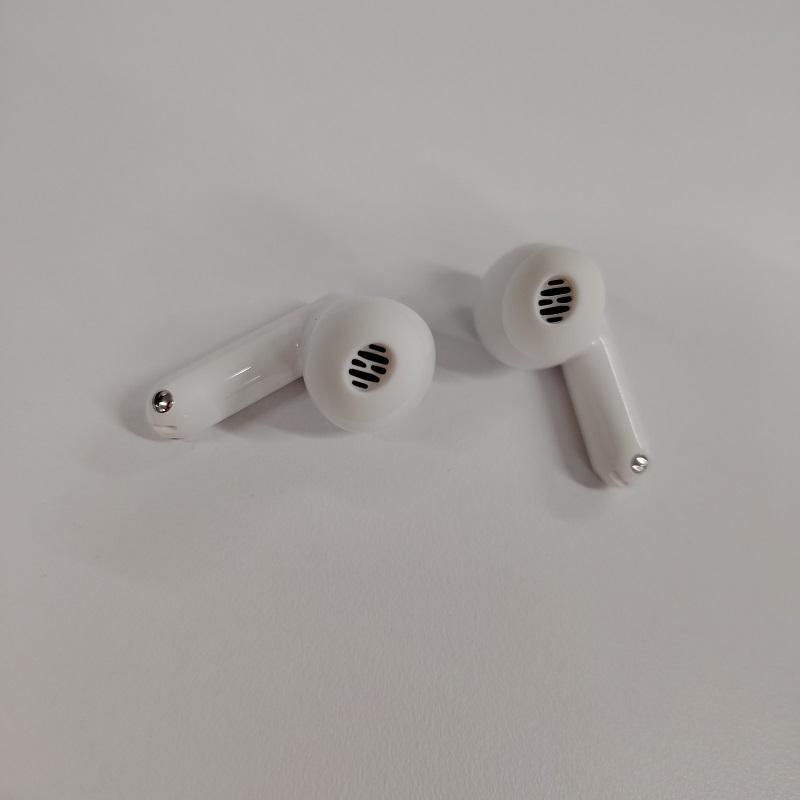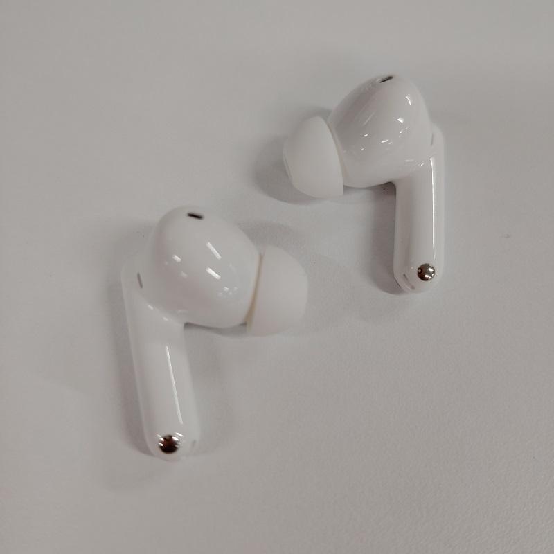 Lifting the lid of the realme Buds T300 case reveals the a pair of true wireless stereo (TWS) earbuds. Like the casing, the earbuds sport smooth, shiny surfaces. When idle, the earbuds magnetically attach to their respective slots inside the charging case. Out of the box, the earbuds carry standard ear tips. If they do not fit, users may choose from the two more pairs of ear tips with different sizes that come with the T300.