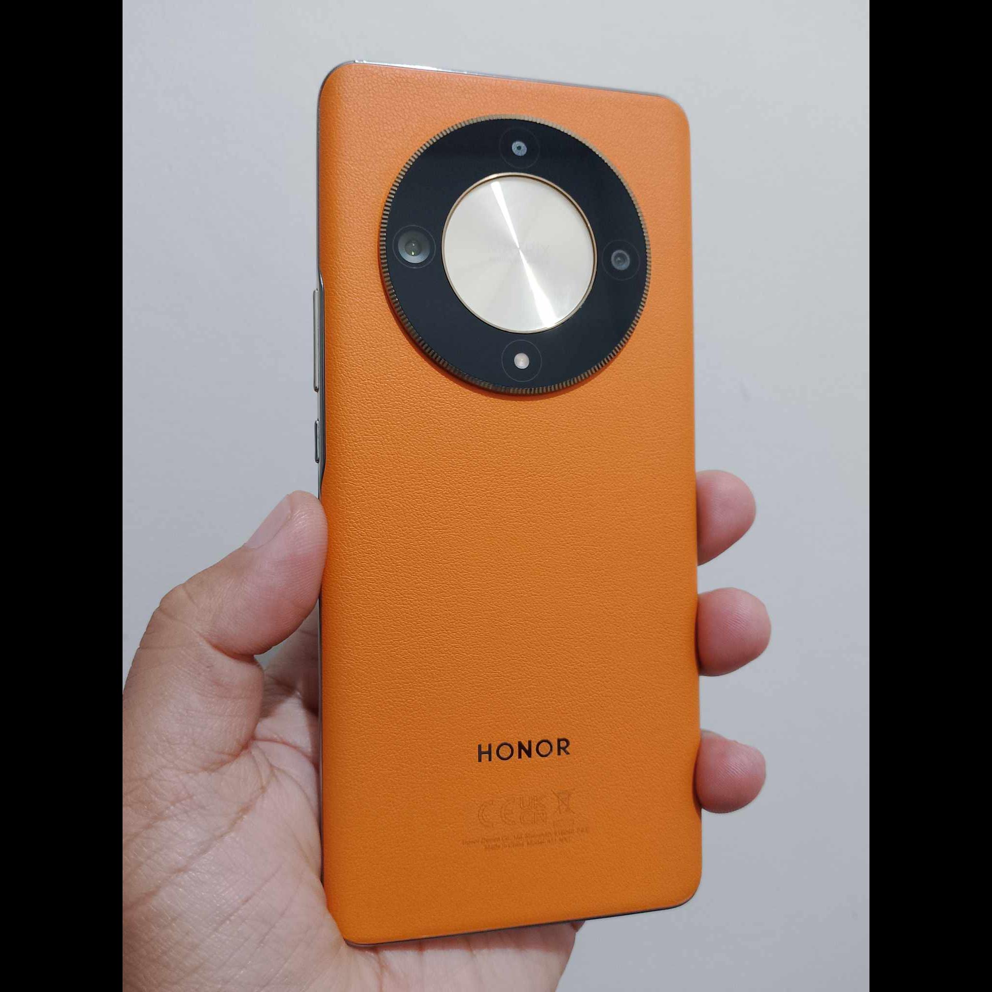 Weighing 185g and measuring 7.98mm thick, the HONOR X9b 5G comes in three color variants: Emerald Green, Midnight Black, and Sunrise Orange. Apart from its bright color, the last one stands out because of its vegan leather back cover, which amplifies the premium look and feel of the device. The back cover texture also allows enhanced grip of the phone.