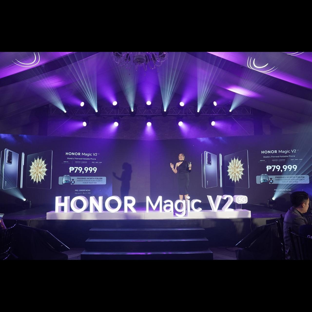 Only until March 1, 2024, you can get a FREE HONOR Watch GS 3 and Harman Kardon Aura Studio 4 HIFI Speaker worth ₱28,000 in total when you pre-order HONOR Magic V2, priced at ₱79,999 only! Head on now to your nearest HONOR Experience and Partner Stores or shop online via Shopee (https://bit.ly/Shop_V2_PR), Lazada (https://bit.ly/Laz_V2_PR), and TikTok Shop (https://bit.ly/TikTok_V2_PR)!