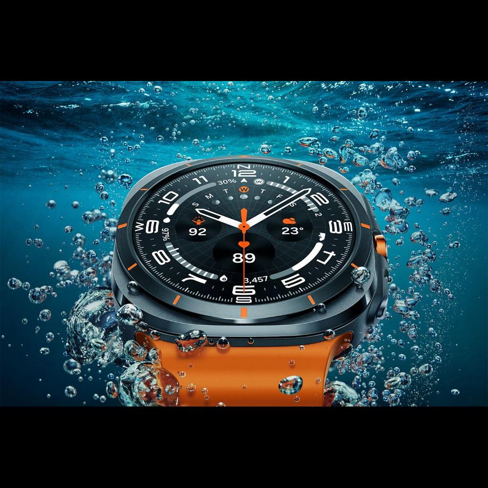 Premium capabilities built for extreme durability enable you to push limits and go further with a Titanium Grade 4 frame and 10ATM water resistance. Additionally, Galaxy Watch Ultra operates at a wider range of altitudes, from 500 meters below sea level to 9,000 meters high for tracking advanced fitness experiences like swimming in the ocean to cycling in extreme environments.