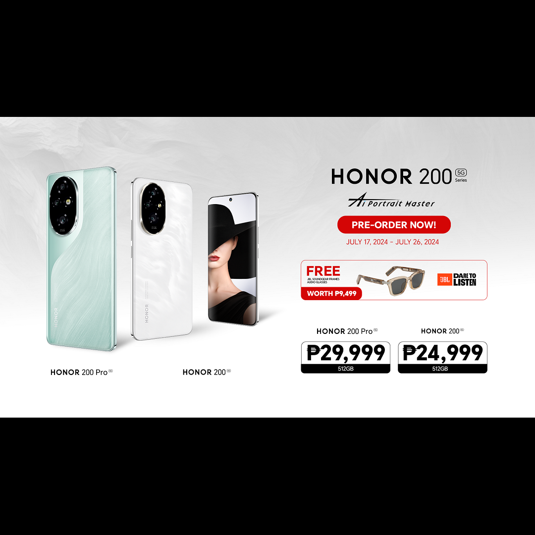 Global technology brand HONOR Philippines announced the launch of the new HONOR 200 Series, an accessible flagship lineup that delivers flagship-level performance and unparalleled AI portrait photography experience. Starting at ₱24,999, you can now pre-order HONOR 200 and HONOR 200 Pro from July 17 to 26, 2024 to get FREE JBL Soundgear Frames worth ₱9,499!