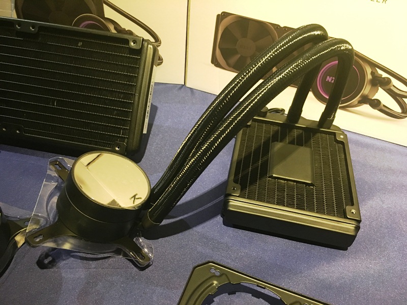 Speaking of cooling, NZXT brought to the table its Kraken series liquid cooling solutions. The lineup has five models which vary according to the size of liquid cooling unit and fan model, namely the X42 (140mm + Aer P140 PWM Fan), X52 (240mm + Aer P120 PWM Fan), X62 (280mm + Aer PWM Fan), X72 (360mm + Aer P120 PWM Fan), and the M22 (120mm + Aer P120 PWM Fan). All models come with a radiator and a pump as part of the entire system.