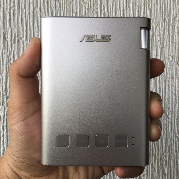 Seeing the P1 LED for the very first time, one could easily tell that it is a mini projector, and that is because of its conspicuous rotating lens. However, the case of the ZenBeam E1 is quite different. Minus the packaging and its accessories, one might say that it is a portable power bank. Its similarity to one of ASUS's ZenPower power bank models is obvious. In actuality, the ZenBeam E1 doubles as a power bank. The 6000mAh battery module within is not only meant to power the projector itself (for up to five hours at 50 lumens) when not plugged, but it can also juice up other compatible mobile devices such as smartphones and tablets. Fulfilling its duty as a power bank, the ZenBeam E1 comes with a USB Type A port to accommodate a micro-USB cable connected to a rechargeing device. Meanwhile, the projector itself can be recharged by using the supplied AC plug.
