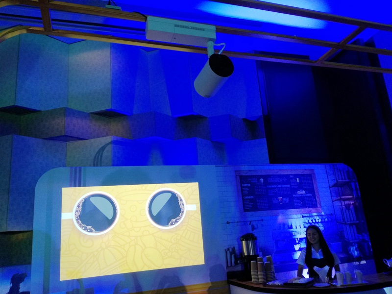 Epson's LightScene projector was used in a coffee shop, too, to entertain customers while waiting for their orders by creating visuals on the wall. This seemed to be a more interesting approach, especially that nowadays, spotlight-shaped projectors can be easily mounted and installed in different environments.