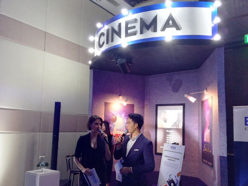 The Epson's current line of spotlight-shaped projectors also showed its video-readiness when it projected looped movie schedules and advertisements in a camera setup, proving that business now have more creative freedom with content and can experiment with a more immersive type of media such as video.