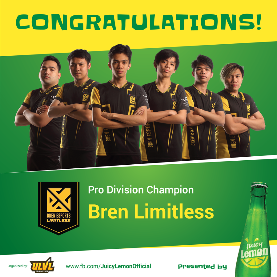 Top gaming teams Bren Limitless and Dream High Gaming emerged as overall Champions at the first-ever Juicy Legends Tournament which culminated in the iconic Isetann Recto Mall in Manila. The two-month Juicy Legends Tournament, staged by ULVL Gaming and sponsored by ARC Refreshments Corp.’s Juicy Lemon brand, served as an esports battleground for avid gamers of the popular Mobile Legends: Bang Bang.