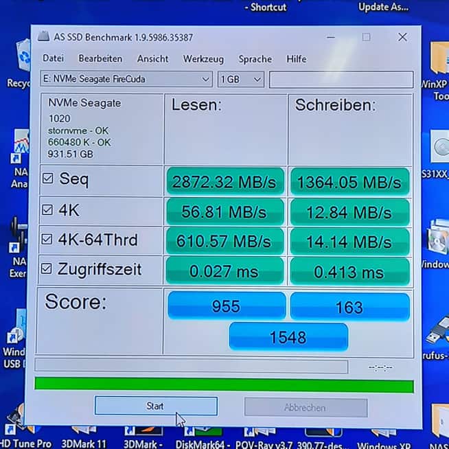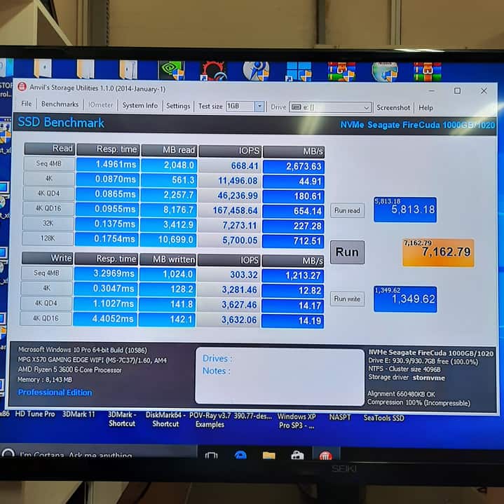 We put to the test the FireCuda 510 SSD on a desktop PC powered by an AMD Ryzen 5 3600 processor. The PC also uses an MSI MPG X570 Gaming Edge WiFi motherboard with 8GB RAM, running on Microsoft Windows 10 Pro. Running CrystalDiskMark, the FireCuda 510 even managed to break its advertised speeds, reaching up to 3480/3060MBps sequential reads/writes.