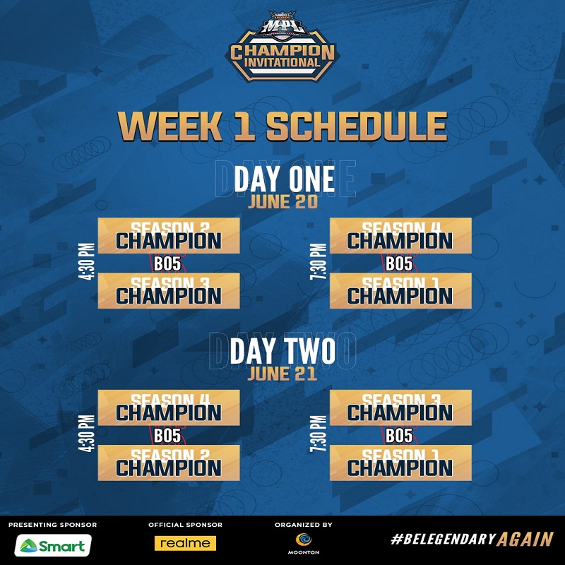 Kapamilya esports fans can catch the thrilling match-ups of the MPL-PH Champion Invitational from June 20 to 21 and June 27 to 28, live in progress, on LIGA and iWant at 6 pm, with live streaming starting at 4:30 pm on sports.abs-cbn.com, ABS-CBN Sports' Facebook page and YouTube channel, and TFC.tv.