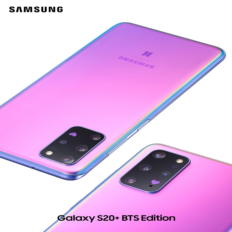 The Galaxy S20+ BTS Edition features a purple exterior with the group’s logo and purple heart iconography found on the backside of the device. It also has a pre-installed BTS-inspired theme, icons, and more, that fans will not want to miss out on.