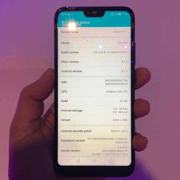 Taking inspiration from northern lights (aurora borealis), the Paris Aesthetics Center combined a 3D glass back with nano-scale optical coating composed of 15 layers of shimmering color, resulting in a colorful, radiant look of the Honor 10 from any angle. On the front, the handset carries a 5.84-inch FullView FHD+ screen, 19:9 bezel-less display, and an 86% screen-to-body ratio. For security, an ultrasonic fingerprint sensor is placed under the glass on the front.