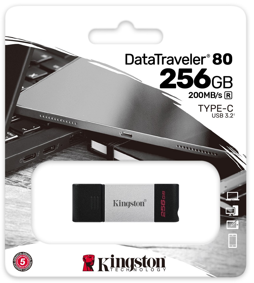 • DataTraveler 80 is a high-performance USB flash drive that supports next-generation Type-C laptops, desktops, smartphones and tablets. Designed for professional and business use, DataTraveler 80 features fast speeds of up to 200MB/s read and 60MB/s write1 which allows for quick and convenient file transfers. The compact and capped design has a durable casing and key ring loop making it ideal for on-the-go storage.