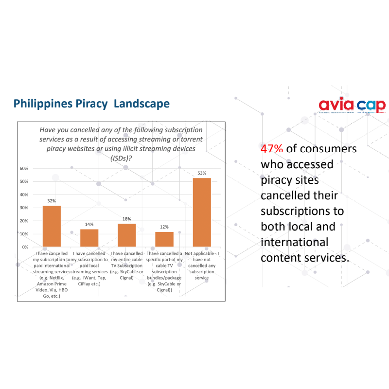 Asian Video Industry Association (AVIA) General Manager Neil Gane called for the blocking of websites that give access to pirated content. He cited how Indonesia has effectively curbed online piracy by 69% and increasing legal platforms by 30%.
