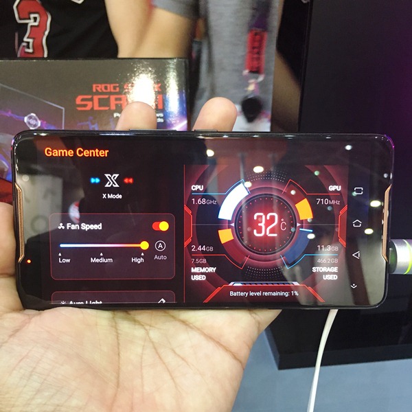Clad in a shiny black shell, the ROG Phone comes with unique side-mounted ports and enhanced, ultra-responsive onscreen game controls, including two programmable ultrasonic AirTriggers and advanced force-feedback haptics. As innards are game-optimized, they are expected to generate more heat, hence, the ROG Phone's chassis integrates the GameCool vapor-chamber cooling chamber with detachable AeroActive Cooler for extra cooling. Cooling and other settings can be adjusted with through Game Center, ASUS's game application which we first saw on ROG desktops and laptops.