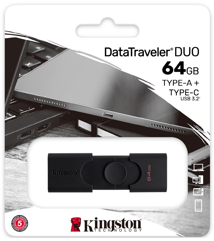 DataTraveler Duo is available in capacities 32GB to 64GB and is backed by a five-year warranty with free technical support.