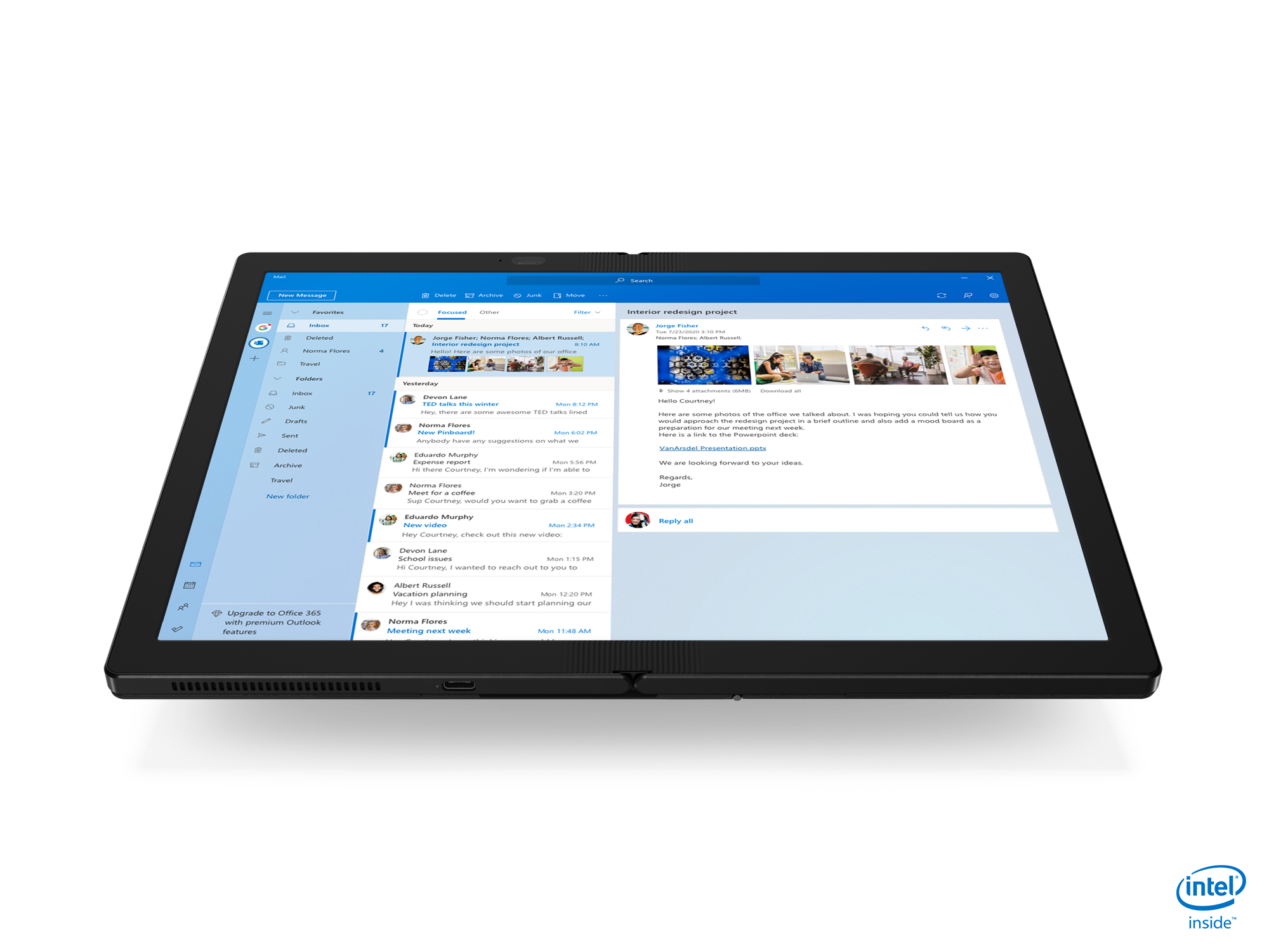 Thanks to its flexible display, the X1 Fold transforms to the way consumers will use the device throughout the day. The small and lightweight yet powerful PC can go from presentations to emailing to reading to drawing without losing signal or weighing the user down.
