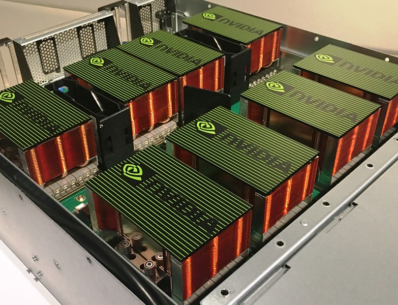 Capable of expanding the performance of the DGX-2, the NVIDIA HGX-2 is a high performance computing (HPC) platform that also carries a total of 16 NVIDIA Tesla V100 GPUs. NVIDIA designed the HGX-2 to handle multi-precision computing, combining the power of high-precision scientific computing using FP32 and FP64 with the speed of lower-precision AI computing with Int8 and FP16. Powered by NVIDIA NVSwitch, each GPU on the HGX-2 can communicate with one another at full bandwidth of 2.4TBps. Offering two petaFLOPS of performance, the HGX-2 can replace 60 CPU-only server nodes in HPC application or 300 CPU-only server nodes in AI training application.