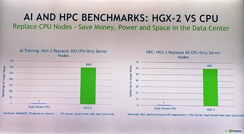 Working along with the system’s set of 16 Tesla V100 GPUs are dual Intel Xeon Platinum 8168 CPU, 1.5TB of system memory, 2x 960GB NVMe SSDs (1.92TB OS storage), and 8x 3.84TB NVMe SSDs (30TB internal storage). While a DGX-2 system would cost USD 399,000 (over PhP 21 million), it is still more cost-efficient than running an equivalent of 300 servers with dual Intel Xeon Gold CPUs that would cost more than USD 2.7 million (almost PhP 144 million).