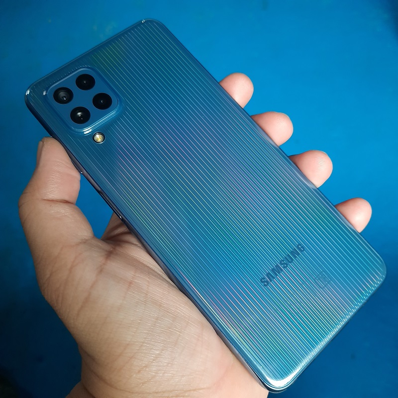 Positioned as a device designed for young professionals who are at the beginning of their careers, as well as students who are preparing to enter the workforce, the Samsung Galaxy M32 has a youthful design sporting a glossy back with fine, laser-pattern vertical lines. Color options include black and light blue.