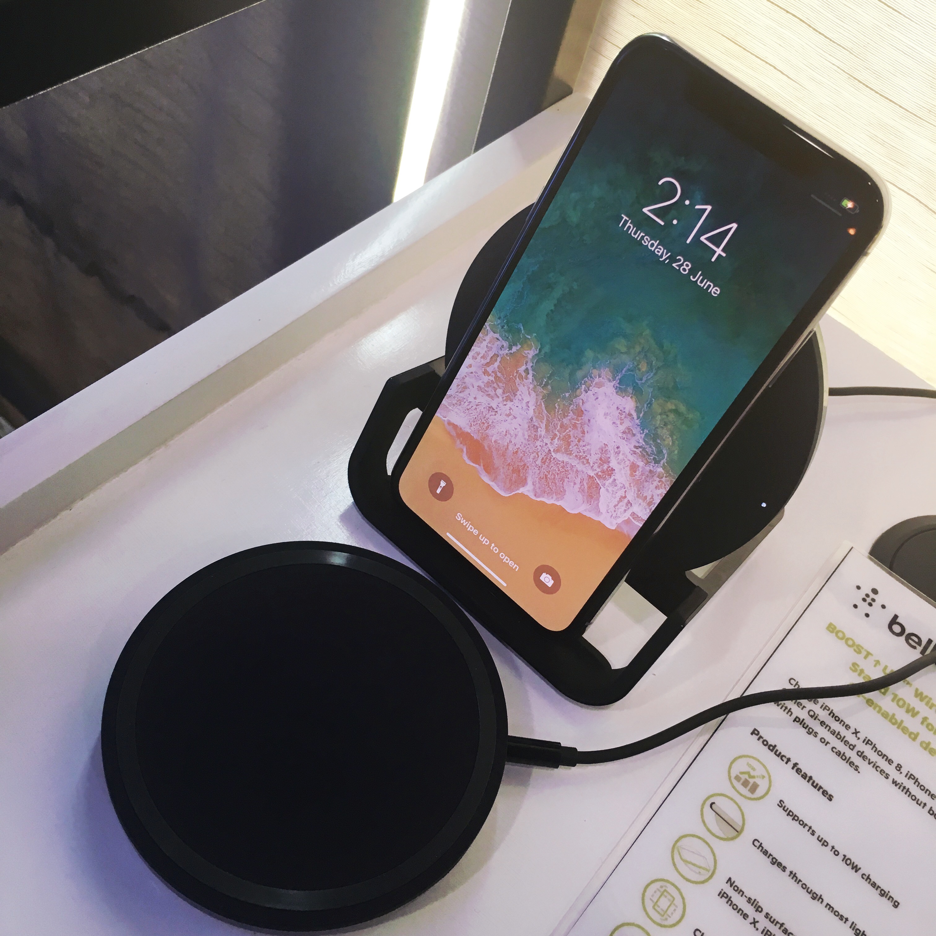 The new Belkin Wireless Charging Pad juices up your iPhone 8, 8+, or X, minus the snaking cables. All you have to do is lay your handset onto the charging pad, regardless of the orientation. The charging process works even if your phone is clad in a plastic case.