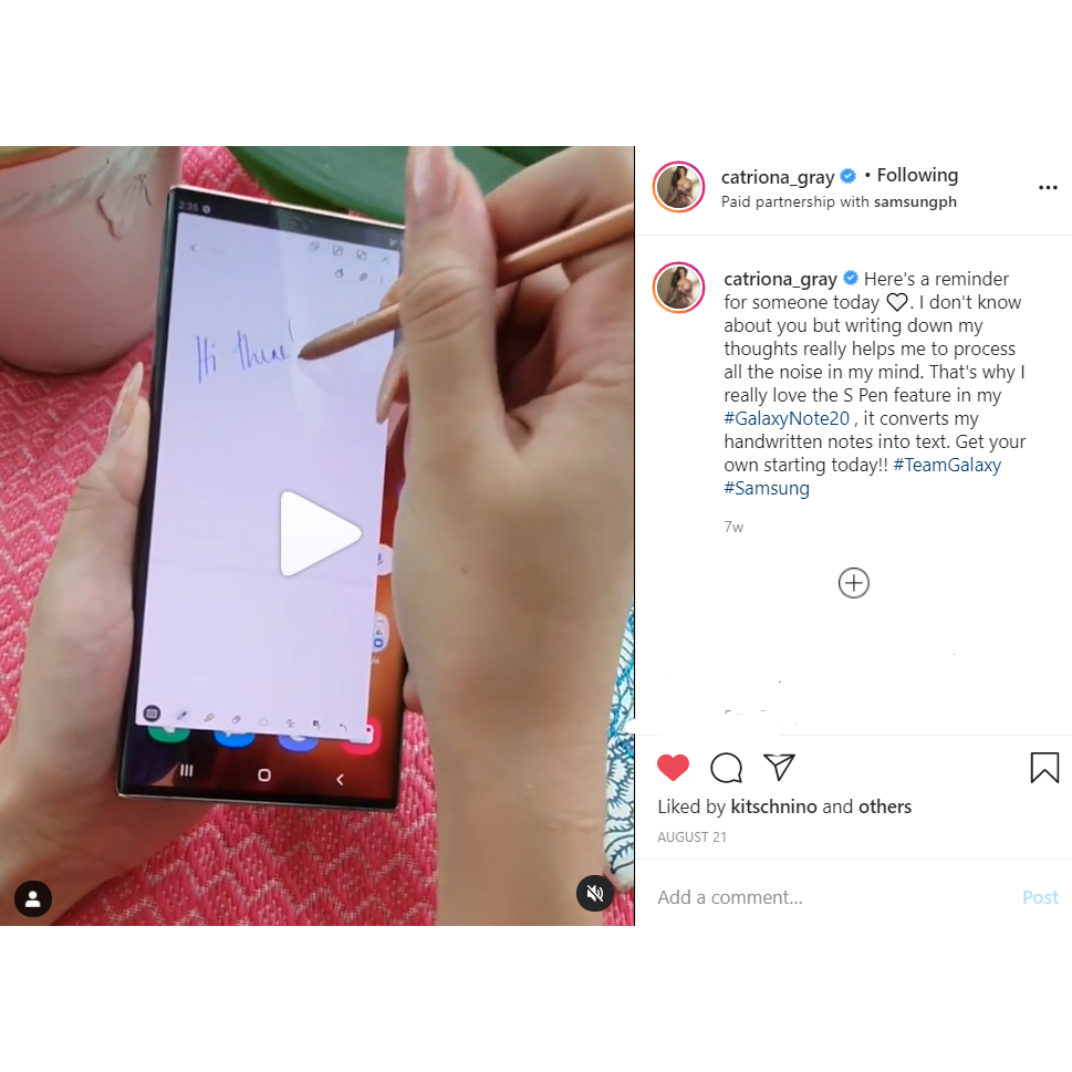 The Galaxy Note20 Series is crafted for multi-hyphenates who want to be on top of their game. For these individuals, being able to seamlessly switch between work and play means being able to control and optimize their lives. Galaxy Note20 Series ambassadors Catriona Gray, Erwan Heussaff, Bianca Gonzalez, and Gino Quillamor believe that there are numerous ways to power through work and leisure activities. Here are some of their tips: 1. Quickly record and share notes to not miss important details. Having multiple meetings in a day, Catriona uses her Galaxy Note20 Ultra's Lifelike S Pen and the app Samsung Notes, which allow her to jot down minutes, convert handwritten notes into digital texts, and send it through email. The device allows her also to import PDF files or photos on Samsung Notes so she can place her comments directly. This gives her more time to focus on other tasks. 2. Maximize productivity tools. Catriona uses the powerphone as her canvas when designing textiles or wh