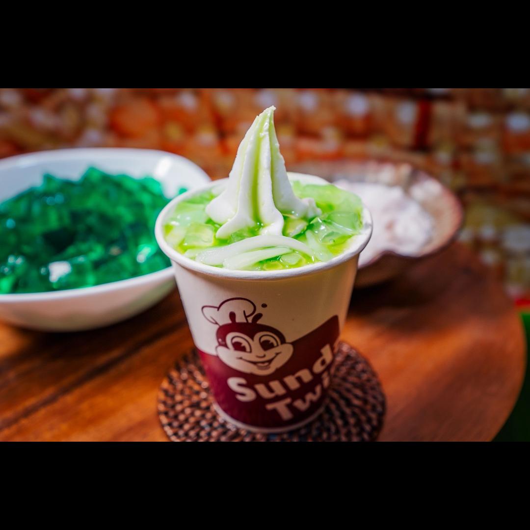 The Buko Pandan Sundae, Jollibee’s modern and levelled-up take on the classic Filipino dessert, is their signature creamy vanilla soft-serve generously topped with chewy buko pandan jelly, buko strips, and a drizzle of pandan syrup.