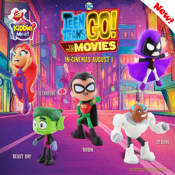 Awesome superhero adventures await young children with the new Jollibee Kiddie Meal toys – Teen Titans Go! To the Movies. Jolly kids can join forces with Robin, Beast Boy, Raven, Cyborg, and Starfire to fight crime and save the day.