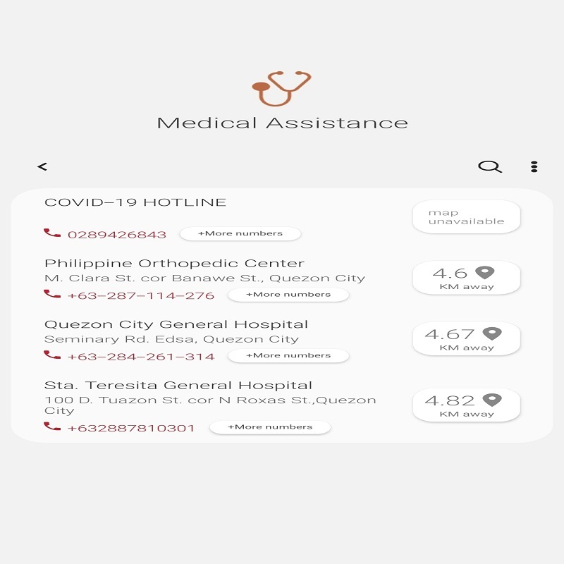 A dedicated COVID-19 emergency button now displays the DOH and Red Cross' COVID-19 hotlines. Contacts for DOH, PNP and the Philippine Red Cross have been updated as well.