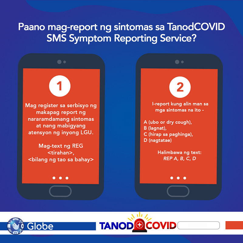Globe will be providing LGU partners and their constituents access and use of TanodCOVID free of any mobile charges to enable them to maximize the use of the platform, and assure the effective and real-time reporting across participating communities. The service is currently available in select areas such as Malabon City and Mandaluyong City in Luzon, the municipality of Maigo in Lanao del Norte, municipalities of Puerto Galera and Bongabong in Oriental Mindoro, municipality of San Jose in Romblon, municipality of Jabonga in Agusan del Norte, and Valencia City in Bukidnon.