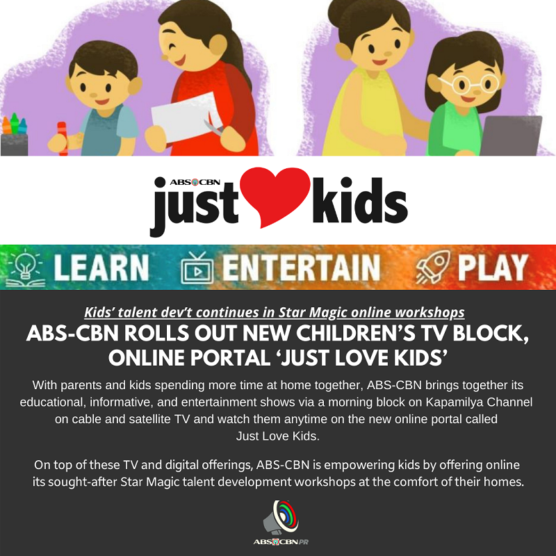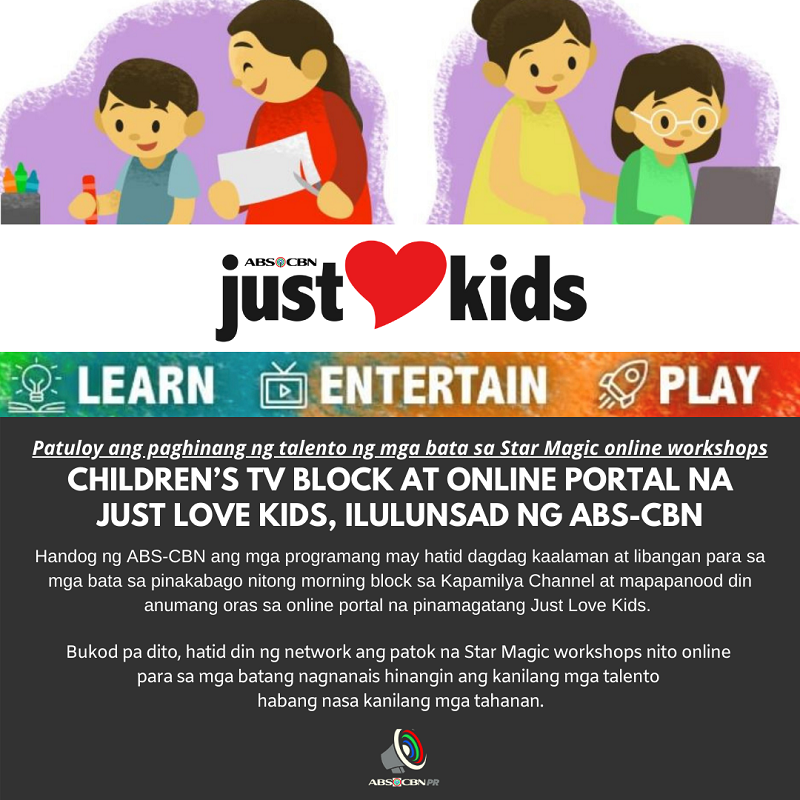 Just Love Kids is one of ABS-CBN’s newest digital offerings following the launch of Kapamilya Online Live that streams its new and well-loved shows live and on-demand, TuTuBee channel on YouTube, and digital events on the KTX.ph portal to reach more Filipinos looking for the Kapamilya brand of entertainment.