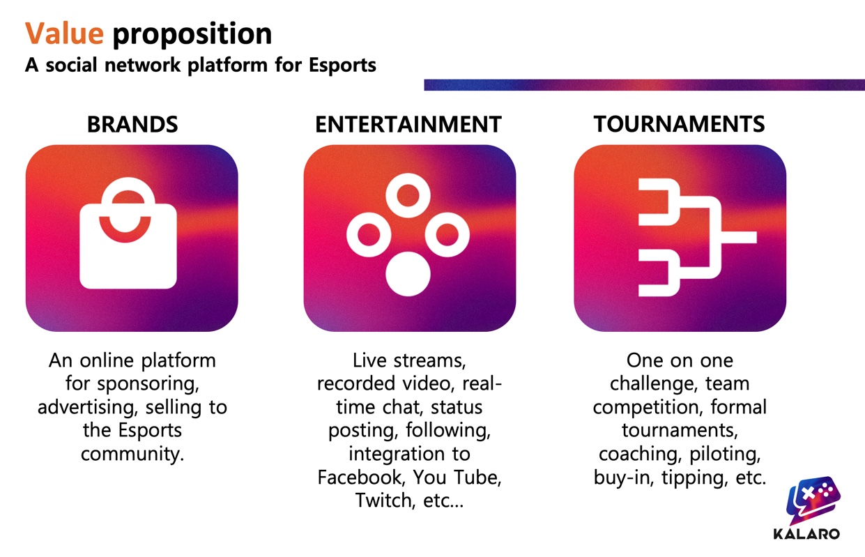 The timeliness of Kalaro seems to be in perfect alignment with the need to boost the Philippine economy. Kalaro can mobilize the 30+ million Filipinos gamers market for some economic activities which would give jobs to corporate brands who will focus on this market segment, create work-from-home opportunities for streamers & gamers, spark some consumer spending and at the same time hone future Esports world champions!