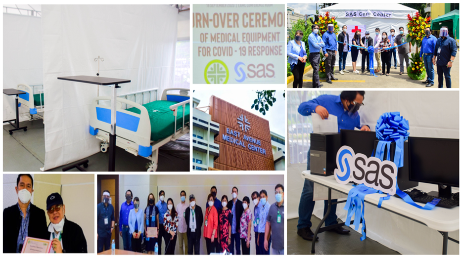 The Philippines SAS team used these funds to procure and donate the SAS Care Centre – A fully equipped medical tent outfitted with technology equipment and furniture for outpatient treatment for the East Avenue Medical Center (EAMC) in Manila in September. The donation also included two computers to be used for data collection as EAMC was setting up a QR code system to record health declaration information for visitors and employees. This was SAS’ commitment to the local healthcare community and to support Filipinos through these trying times.