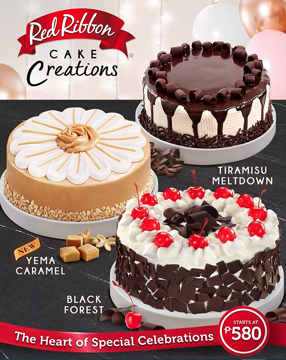 Red Ribbon Cake Creations is available nationwide for take-out, call & pick up in Red Ribbon branches near you, or for delivery through the Red Ribbon Hotline #87777, and Red Ribbon RIA on Facebook Messenger. You can also order through GrabFood, Foodpanda or LalaFood apps.