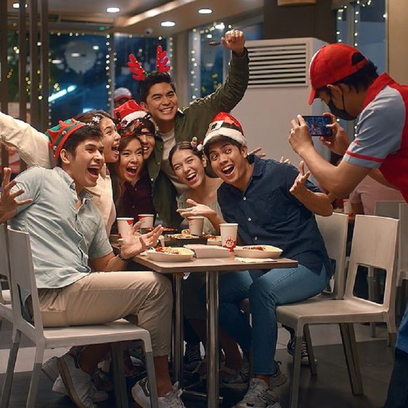 As Jollibee endeavors to bring back the happy and fun moments people look forward to during the most wonderful time of the year, the rest of the video shows several vignettes of joyful Christmas celebrations. This includes a family going to a brightly lit Jollibee Drive-Thru, a group of friends having their Christmas get-together in a Jollibee store, mascots, store teams, and delivery riders happily dancing, and an extended family coming together to celebrate the holidays at their beautifully decorated home.