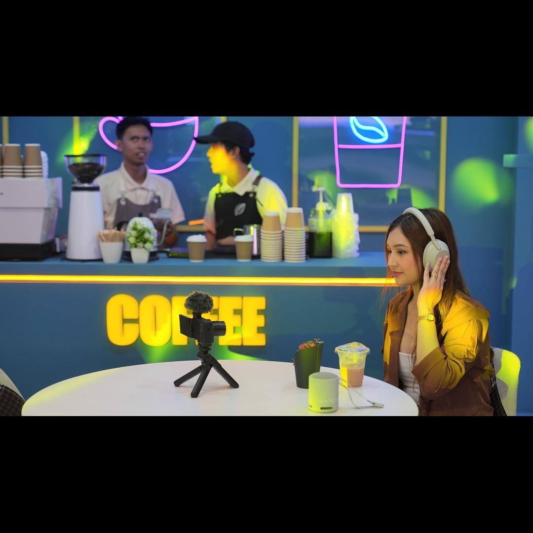 Also featured in the Café booth is the SRS-XE300 speaker which has a Line Diffuser that lets the audio travel far, perfect for filling an entire cafe with ambient music. Complimenting the cafe aesthetic is the WH-CH520, Sony’s lightweight headphones with a trendy design that is perfect for one’s quaint business casual look.