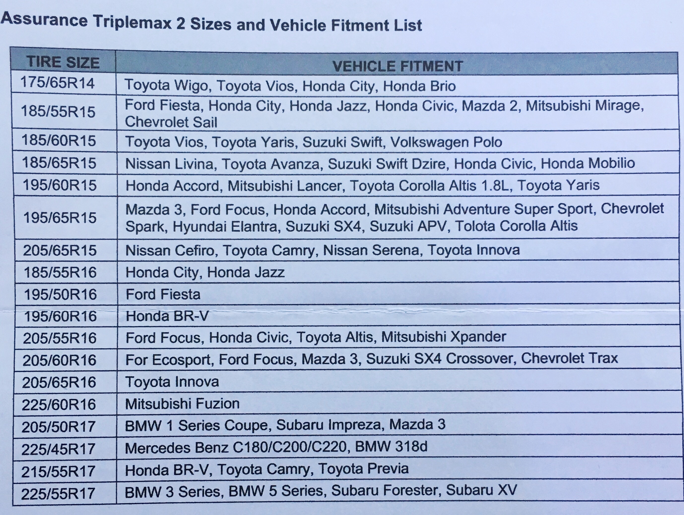 Goodyear's Assurance TripleMax 2 tires are available in 14- to 17-inch rim diameters and various sizes. For more information on Goodyear products, visit the company's Facebook page (www.facebook.com/GoodyearPhilippines) and website (www.goodyear.com.ph).